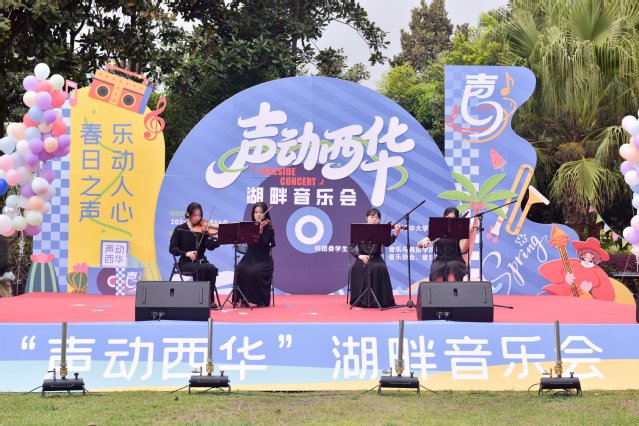 4月2日,西华大学“声动西华”湖畔音乐会开幕式暨四川爱乐乐团“春之韵”特邀演出在天籁湖畔举行。党委常委、副校长山述兰出席活动并致辞,相关职能部门负责人、各学院师生代表共400余人观看演出。